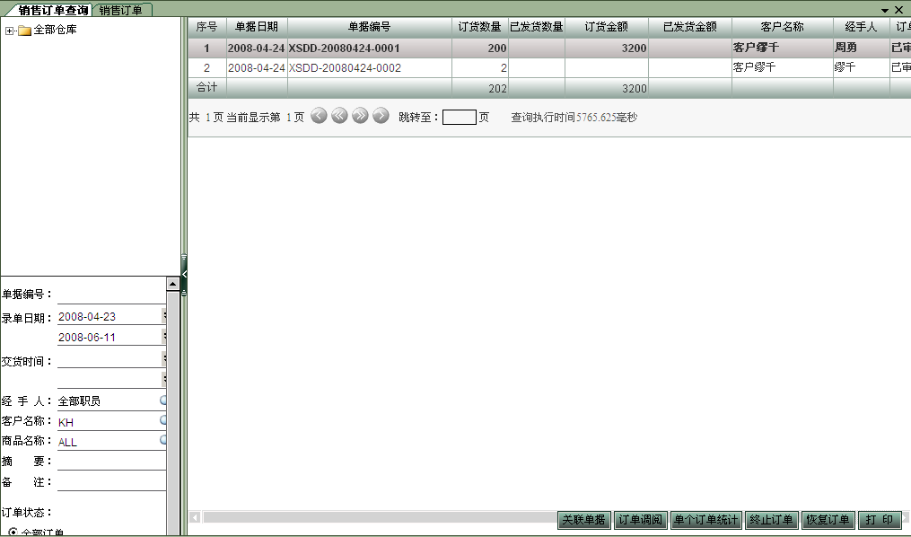 銷售訂單可以幫助用戶對客戶訂貨情況進行管理,讓用戶查詢出某客戶的訂貨情況、某商品的訂貨情況以及訂單完成情況,還可以查詢訂貨庫存情況。