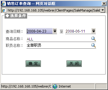 3、從菜單中選中職員銷售分布項,系統(tǒng)自動彈出查詢條件設(shè)置界面