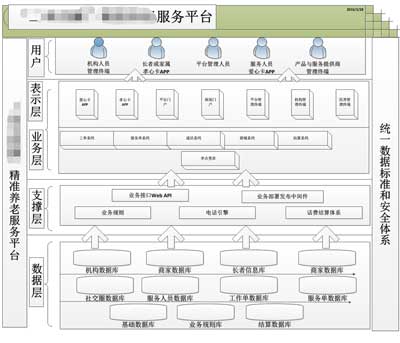 1. 概述2. 系統(tǒng)架構(gòu)3. 系統(tǒng)角色本系統(tǒng)涉及到的角色有:l 管理平臺(tái)后臺(tái)管理員(本公司)l 政府(省、市、區(qū)[縣]、街道[鎮(zhèn)]、社區(qū)...